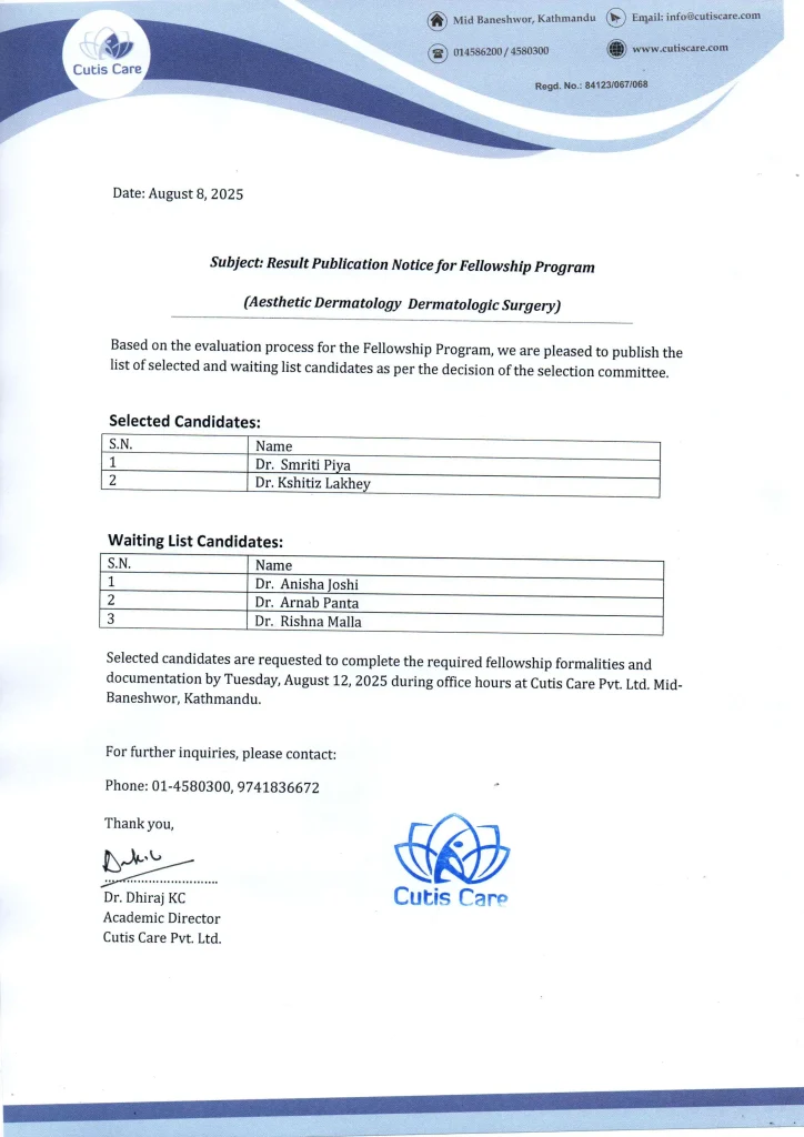 Result Publication Notice for Fellowship Program, 8th Aug 2025